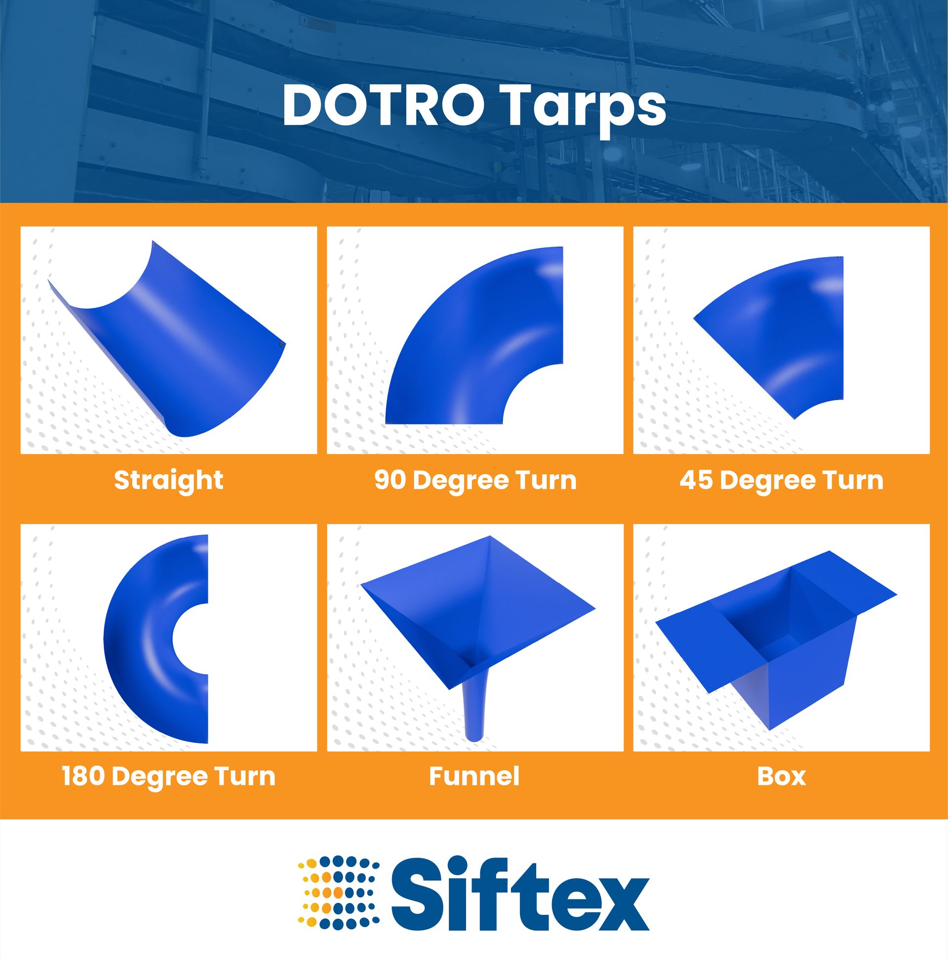 Sewn Dotro tarps are engineered to enhance cleanliness and safety in conveyor systems across various industries. With their precision-cut design and robust construction, these tarps simplify maintenance while providing a reliable barrier against debris and contaminants.